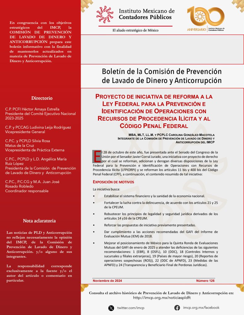 Integrante de la Comisión de Prevención de Lavado de Dinero y Anticorrupción del IMCP
