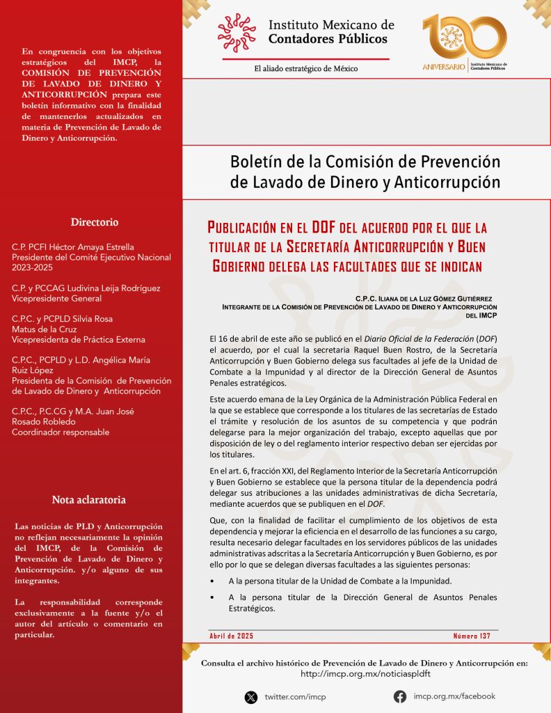 Integrante de la Comisión de Prevención de Lavado de Dinero y Anticorrupción del IMCP