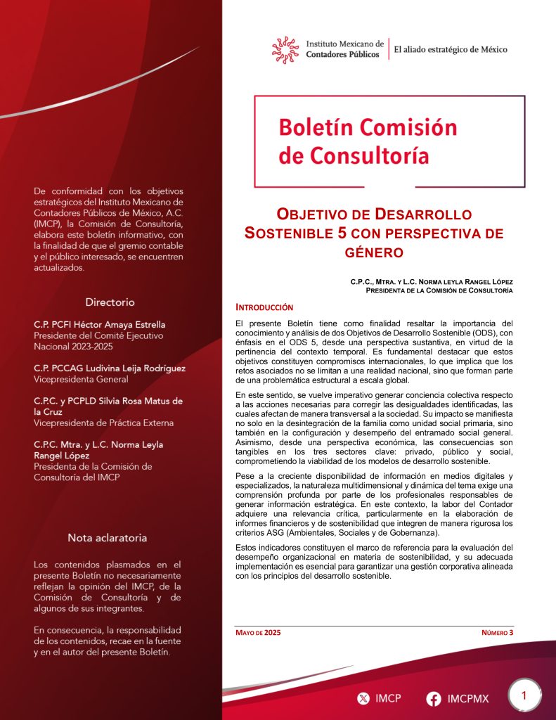 El presente Boletín tiene como finalidad resaltar la importancia del conocimiento y análisis de dos Objetivos de Desarrollo Sostenible (ODS), con énfasis en el ODS 5, desde una perspectiva sustantiva, en virtud de la pertinencia del contexto temporal. Es fundamental destacar que estos objetivos constituyen compromisos internacionales, lo que implica que los retos asociados no se limitan a una realidad nacional, sino que forman parte de una problemática estructural a escala global.