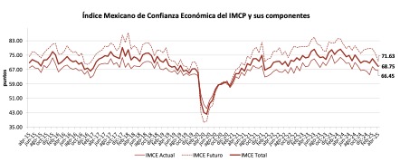 En abril de 2025, el IMCE registró una disminución mensual de -2.87%, situándose en 68.75 puntos.