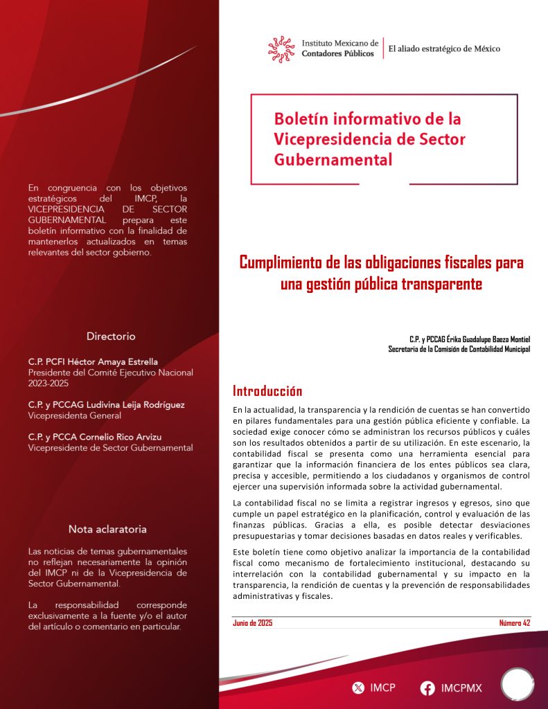 Este boletín tiene como objetivo analizar la importancia de la contabilidad fiscal como mecanismo de fortalecimiento institucional, destacando su interrelación con la contabilidad gubernamental y su impacto en la transparencia, la rendición de cuentas y la prevención de responsabilidades administrativas y fiscales.