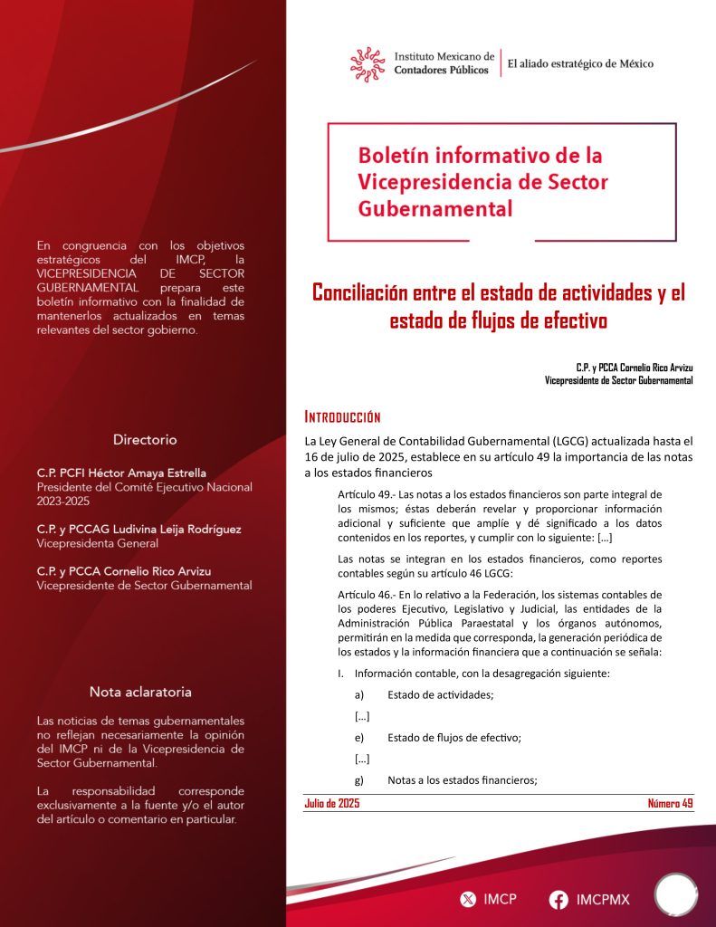 La Ley General de Contabilidad Gubernamental (LGCG) actualizada hasta el 16 de julio de 2025, establece en su artículo 49 la importancia de las notas a los estados financieros