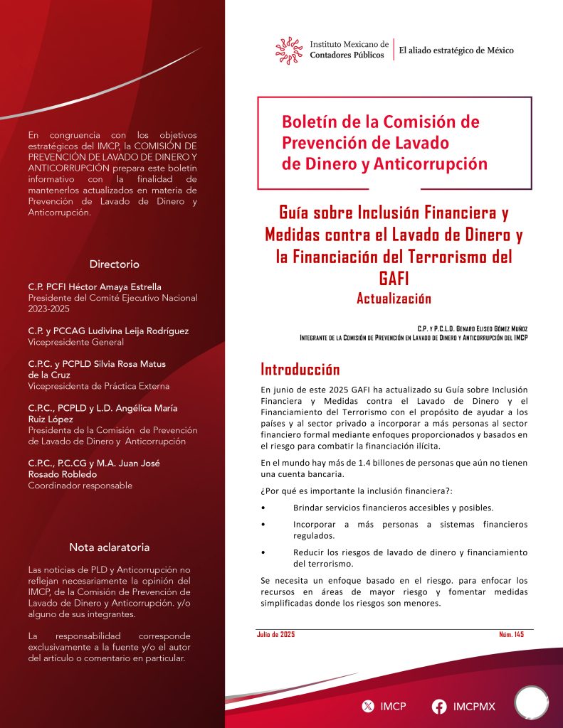 En junio de este 2025 GAFI ha actualizado su Guía sobre Inclusión Financiera y Medidas contra el Lavado de Dinero y el Financiamiento del Terrorismo con el propósito de ayudar a los países y al sector privado a incorporar a más personas al sector financiero formal mediante enfoques proporcionados y basados en el riesgo para combatir la financiación ilícita.