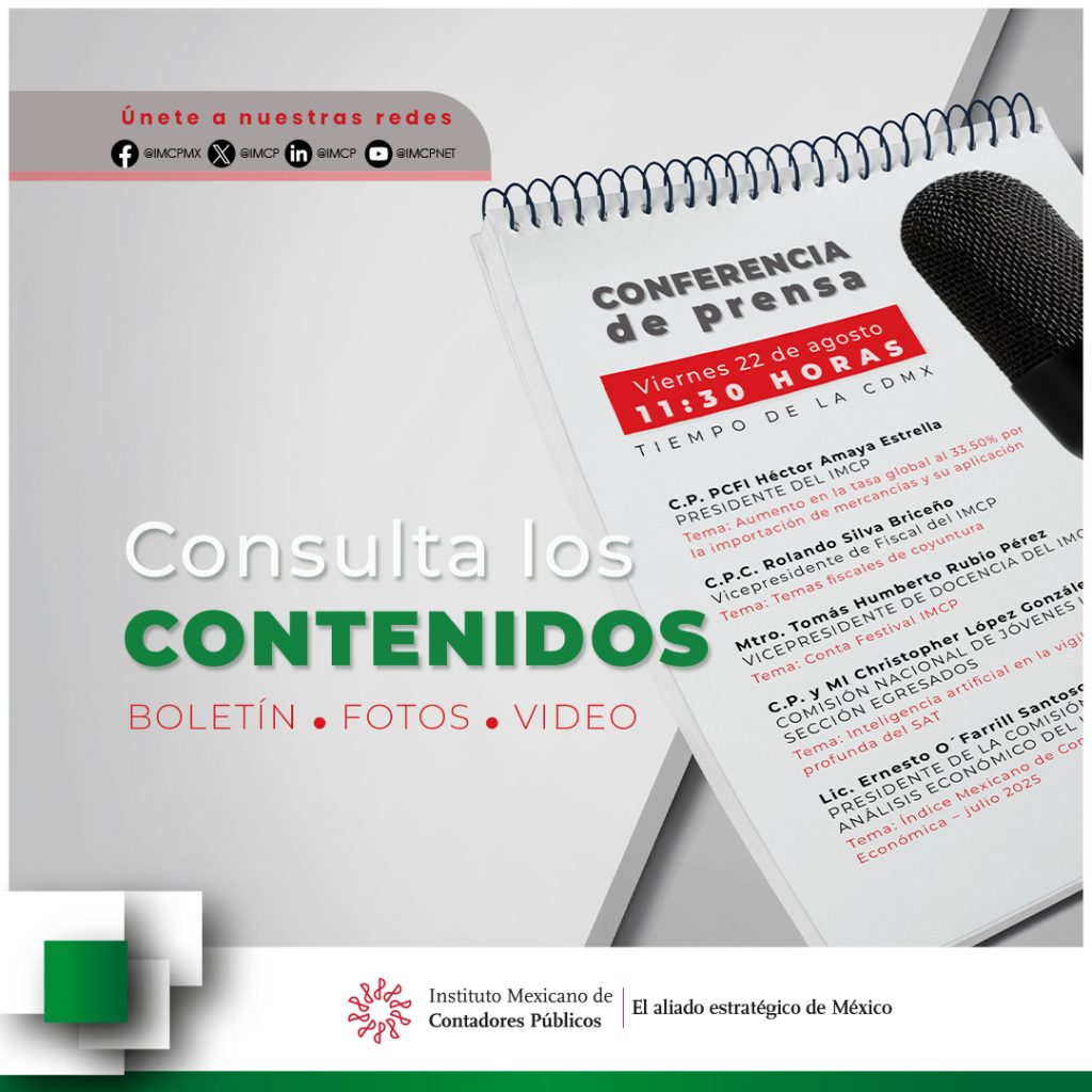 En el Instituto Mexicano de Contadores Públicos consideramos que la reforma podría generar un impacto positivo para las empresas nacionales, lo que a su vez se traduciría en beneficios para la economía mexicana y en una mayor eficiencia en el cumplimiento de las obligaciones fiscales. En este sentido, reiteramos nuestro compromiso como el Aliado Estratégico de México, manteniéndose siempre a la vanguardia en materia fiscal y contable, acompañando de cerca a los profesionistas y empresarios que, día a día, enfrentan y aplican estos constantes cambios.