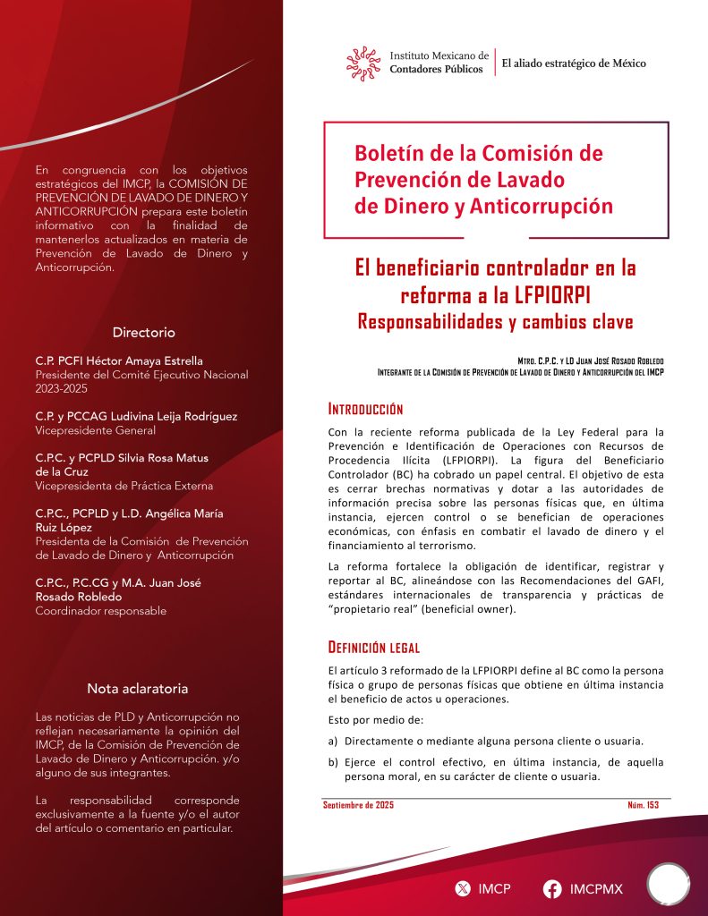 Boletín de la Comisión Nacional de Prevención de Lavado de Dinero y Anticorrupción 153/ Septiembre 2025