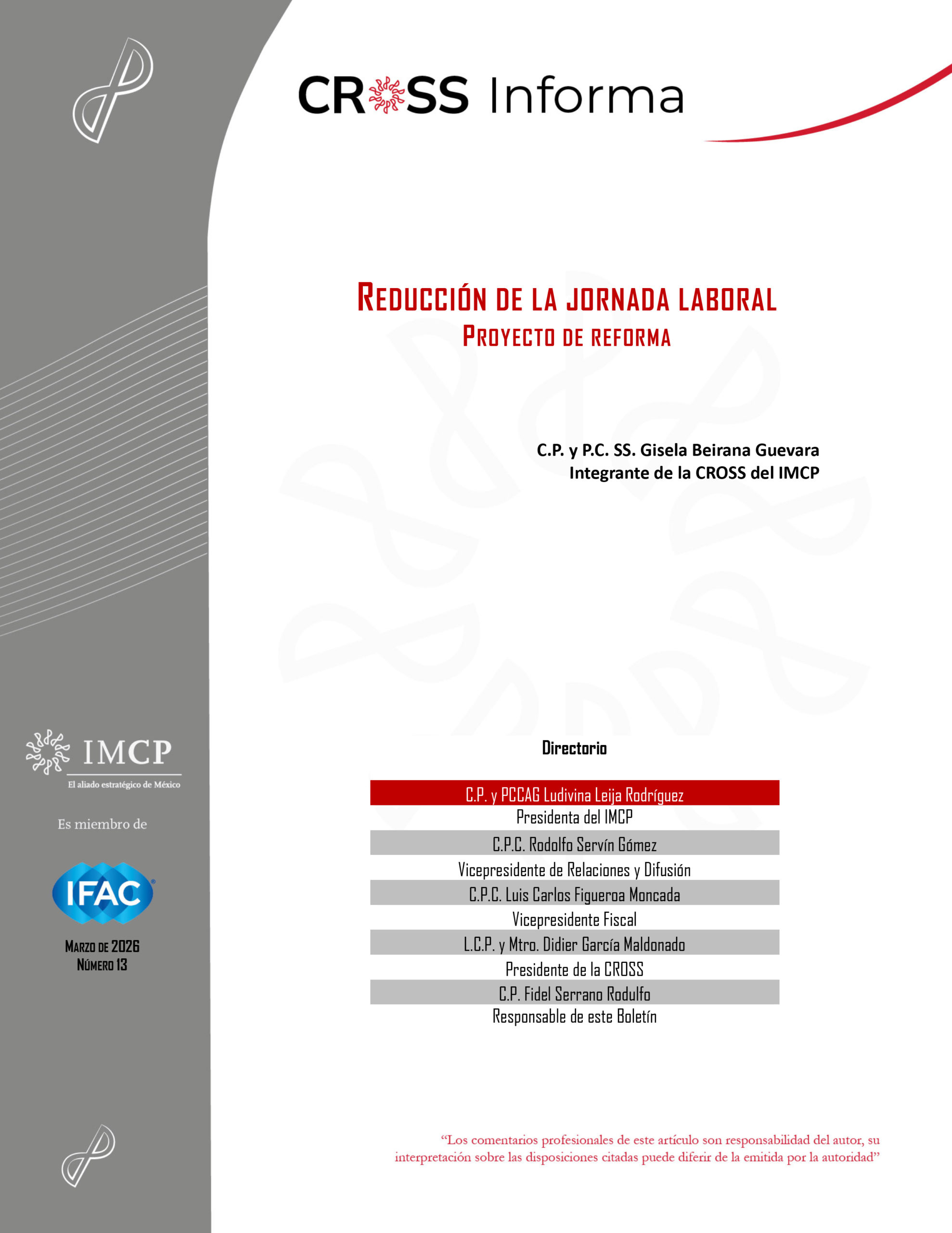 Boletín de Noticias de la CROSS 2025-13 Reducción de la jornada laboral Proyecto de reforma