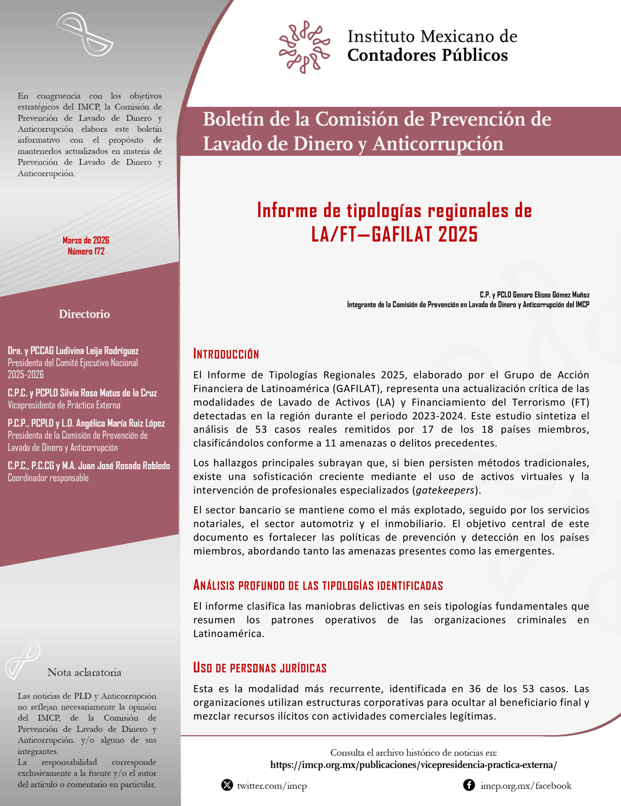 Boletín de la Comisión Nacional de Prevención de Lavado de Dinero y Anticorrupción 172 / Marzo 2026