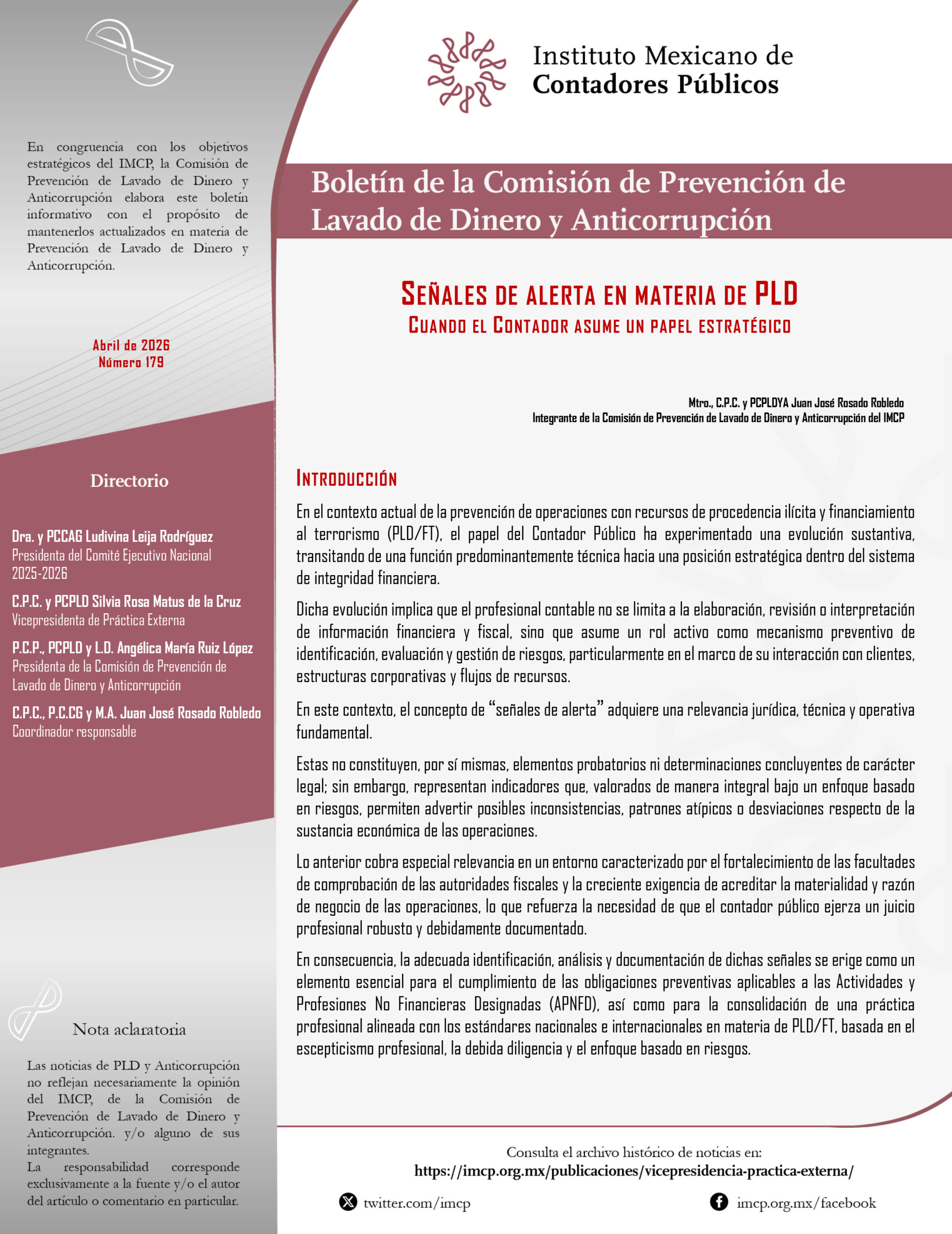 Boletín de la Comisión Nacional de Prevención de Lavado de Dinero y Anticorrupción 179 / Abril 2026
