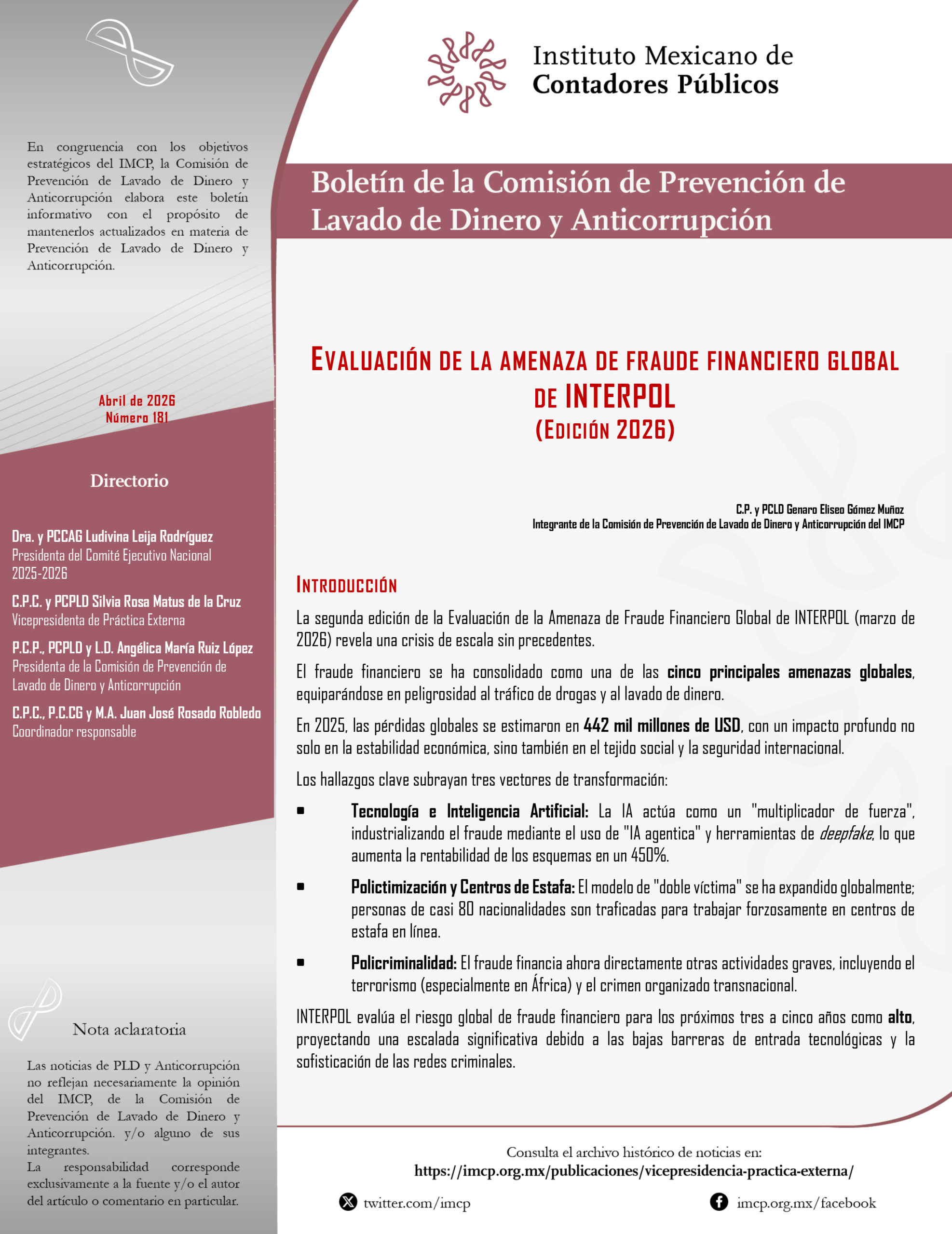 Boletín de la Comisión Nacional de Prevención de Lavado de Dinero y Anticorrupción 181 / Abril 2026