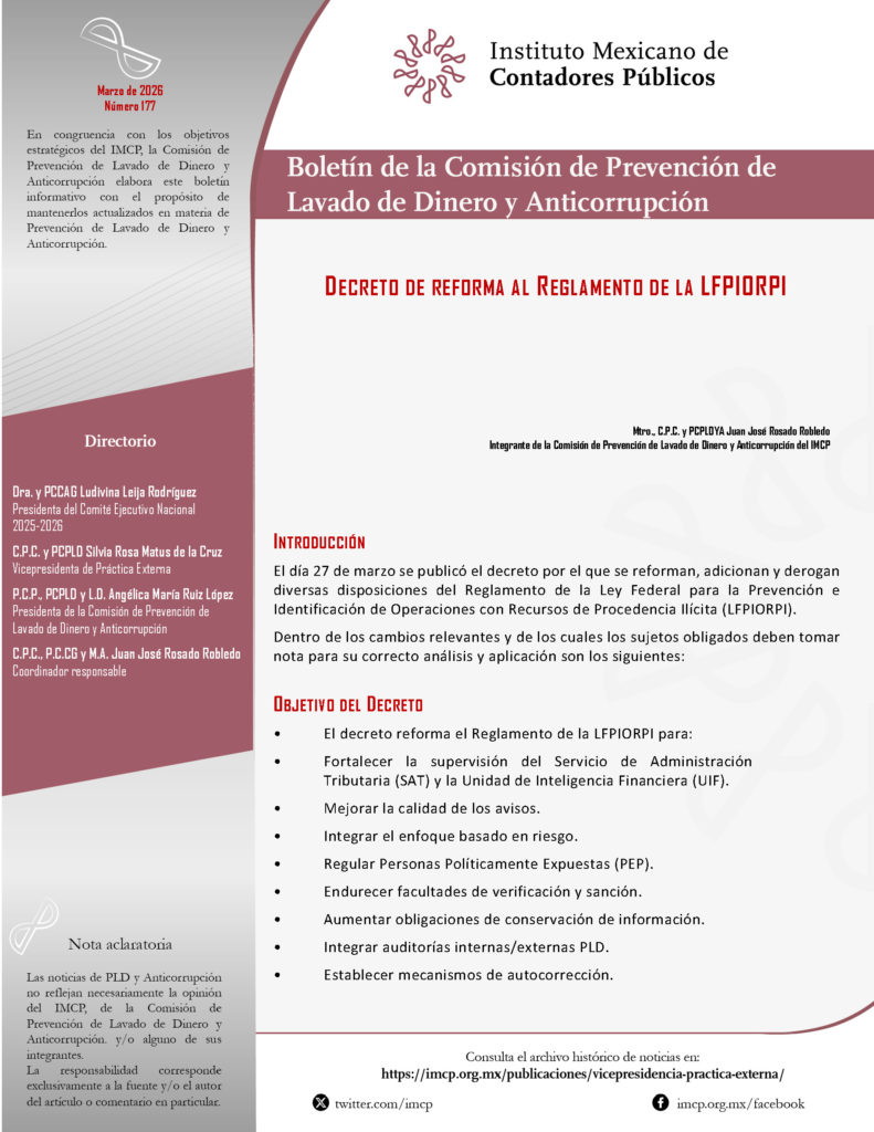 Integrante de la Comisión de Prevención de Lavado de Dinero y Anticorrupción del IMCP