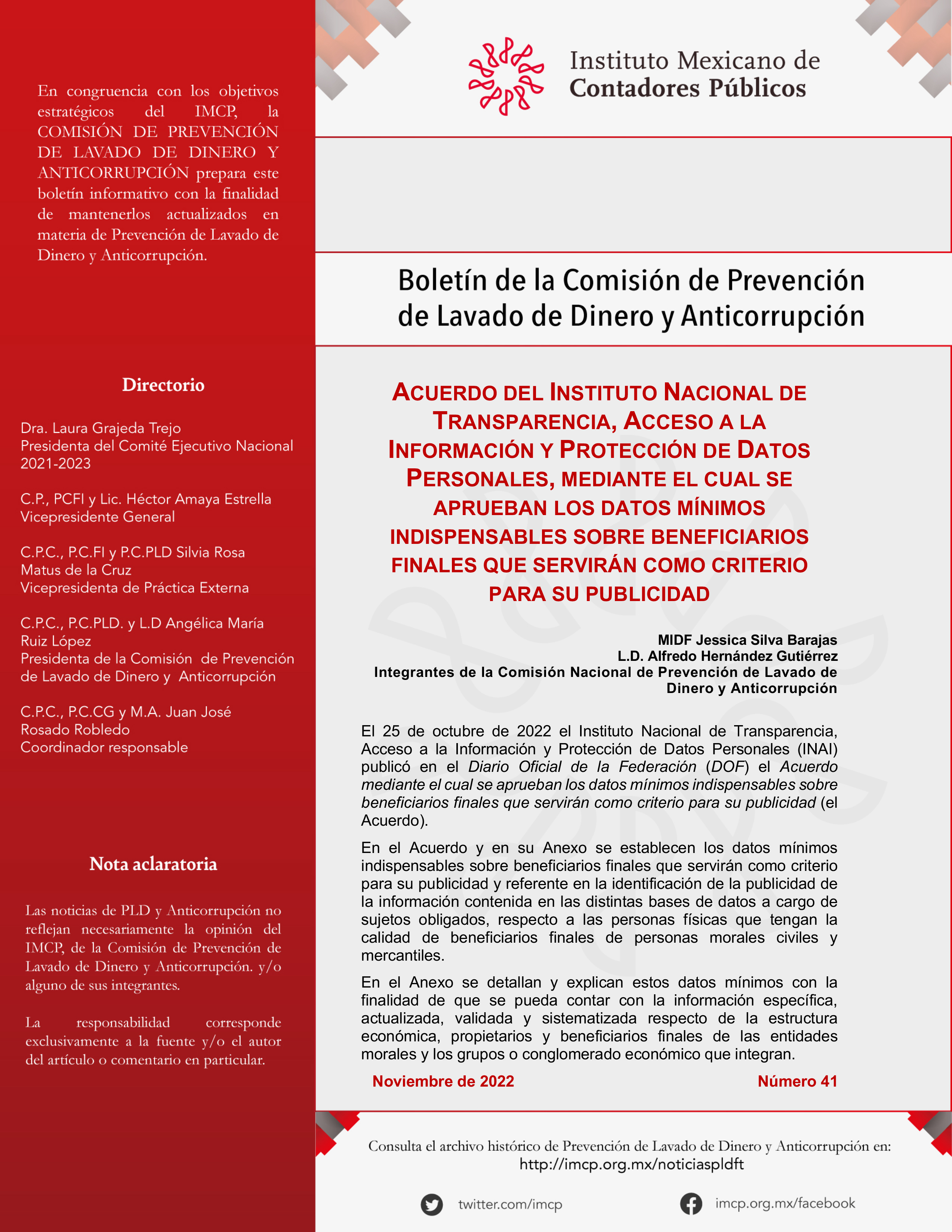 Integrante de la Comisión Nacional de Prevención de Lavado de Dinero y Anticorrupción
