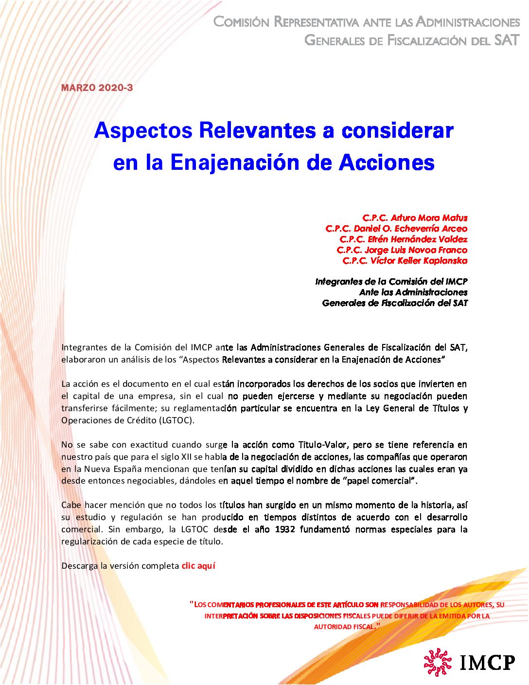 Fisco AGAFF 3 ASPECTOS RELEVANTES A CONSIDERAR EN LA ENAJENACIÓN DE ACCIONES