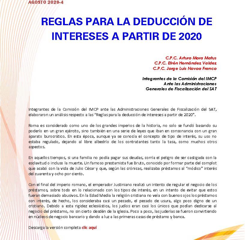 Fisco AGAFF 4 Reglas para la Deduccion de Intereses a Partir de 2020