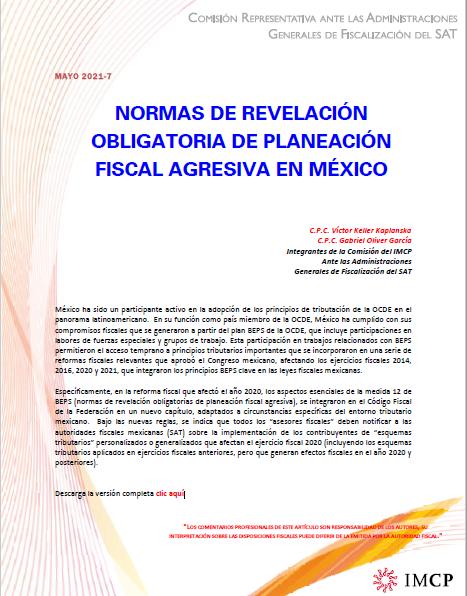 Fisco AGAFF 7 NORMAS DE REVELACIÓN OBLIGATORIA DE PLANEACIÓN FISCAL AGRESIVA EN MÉXICO