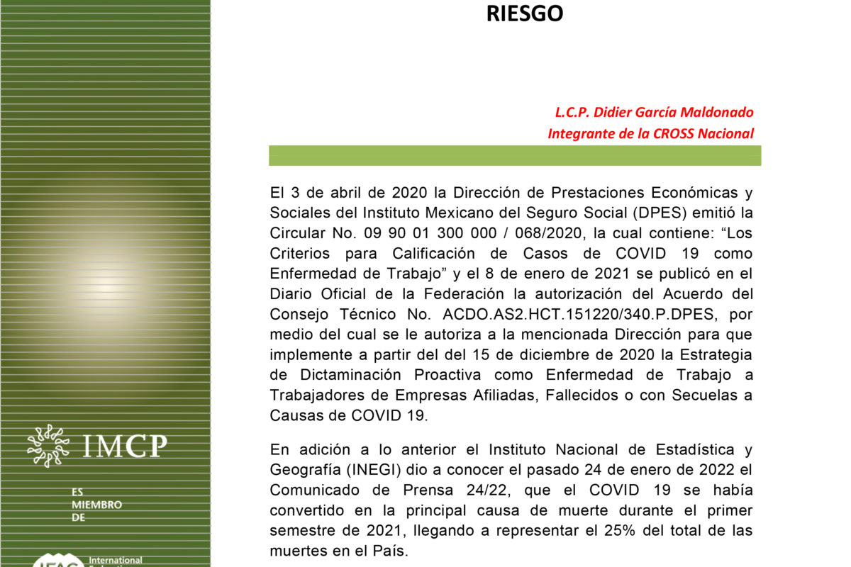 Boletín de Noticias de la CROSS 2022-05 CASOS DE COVID-19 A CONSIDERARSE PARA LA DETERMINACIÓN DE LA PRIMA DE RIESGO