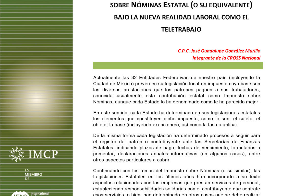 Boletín de Noticias de la CROSS 2022-08 DE LA IMPOSIBILIDAD DE CUMPLIR ADECUADAMENTE EN CIERTOS CASOS CON EL PAGO DEL IMPUESTO SOBRE NÓMINAS ESTATAL (O SU EQUIVALENTE) BAJO LA NUEVA REALIDAD LABORAL COMO EL TELETRABAJO