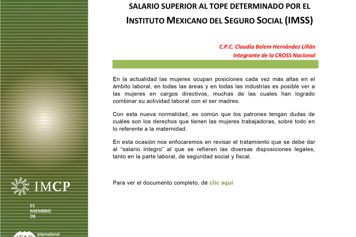 Boletín de Noticias de la CROSS 2022-09 PAGO DE SUBSIDIO DE INCAPACIDAD POR MATERNIDAD A TRABAJADORAS QUE GANAN UN SALARIO SUPERIOR AL TOPE DETERMINADO POR EL INSTITUTO MEXICANO DEL SEGURO SOCIAL (IMSS)