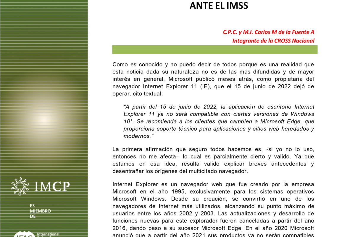 Boletín de Noticias de la CROSS 2022-11 SALIDA DEL INTERNET EXPLORER, IMPACTOS Y RETOS EN EL CUMPLIMIENTO ANTE EL IMSS