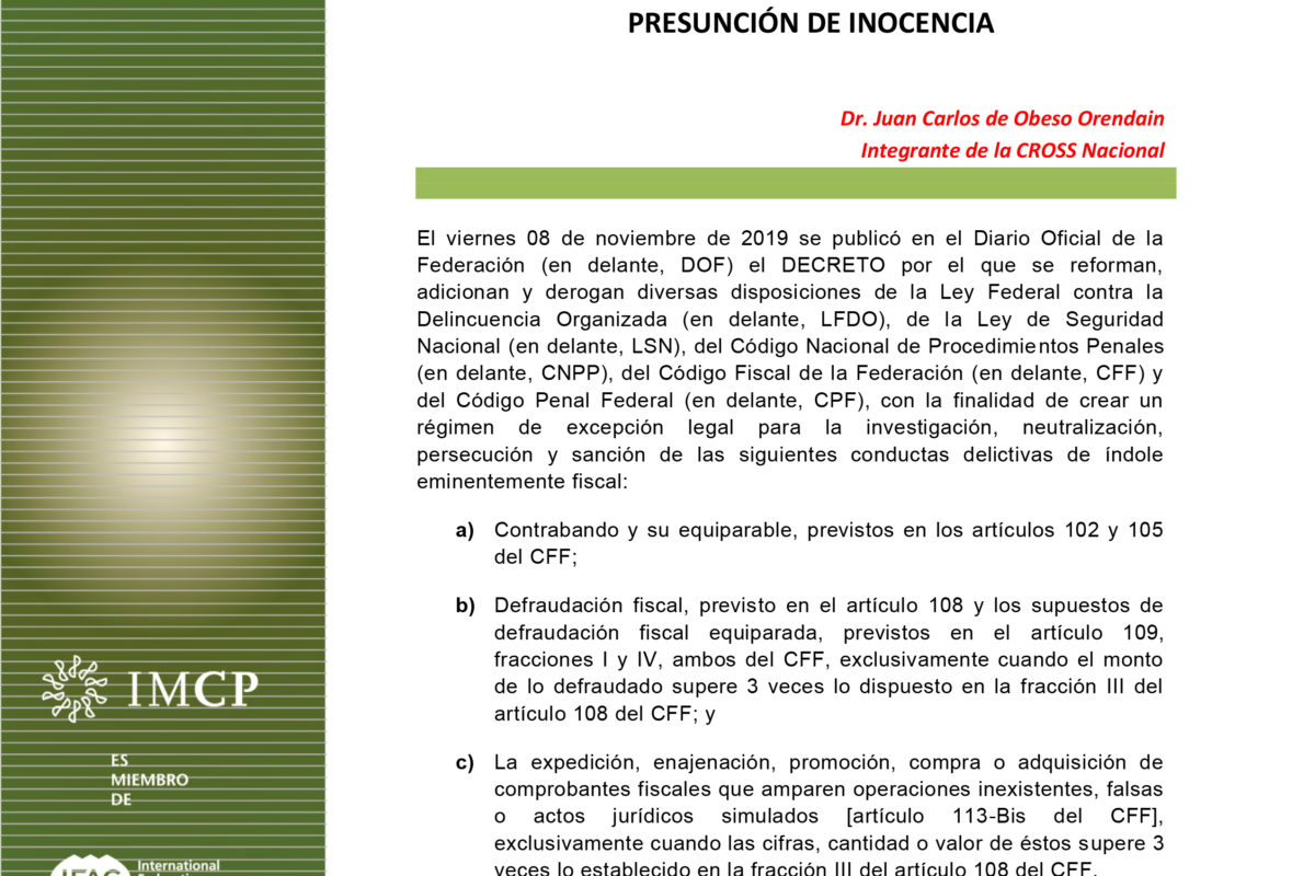 Boletín de Noticias de la CROSS 2022-12 REFORMA PENAL/FISCAL. SU EVALUACIÓN CONSTITUCIONAL EN CLAVE DEL PRINCIPIO DE PRESUNCIÓN DE INOCENCIA