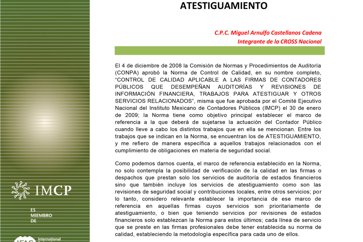 Boletín de Noticias de la CROSS 2022-13 LA NORMA DE REVISIÓN DEL SISTEMA DE CONTROL DE CALIDAD EN SERVICIOS DE ATESTIGUAMIENTO