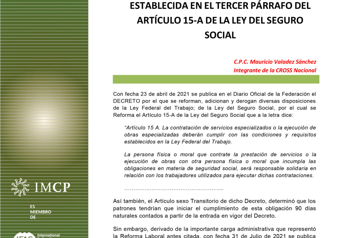 Boletín de Noticias de la CROSS 2022-14 LINEAMIENTOS GENERALES PARA EL CUMPLIMIENTO DE LA OBLIGACIÓN ESTABLECIDA EN EL TERCER PÁRRAFO DEL ARTÍCULO 15-A DE LA LEY DEL SEGURO SOCIAL