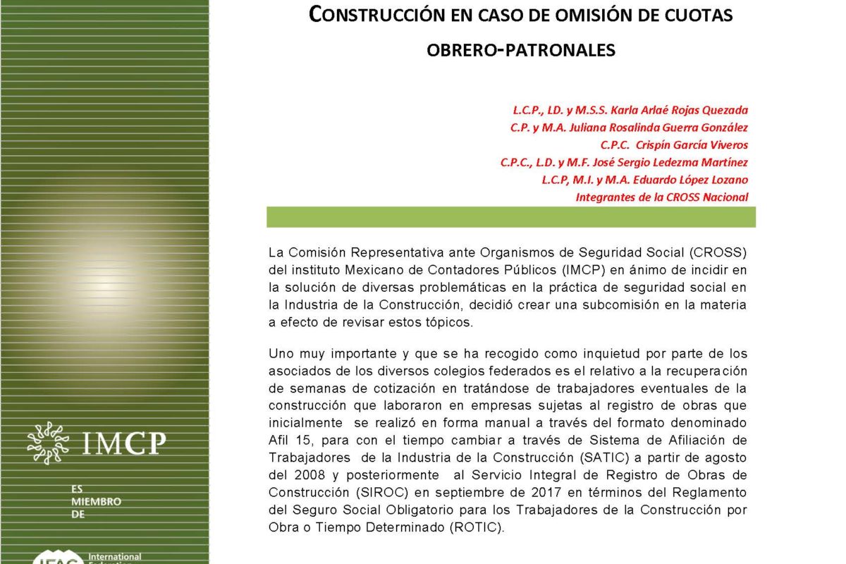 CROSS Informa 2021-01 RECUPERACIÓN DE SEMANAS DE COTIZACIÓN EN EL SEGURO SOCIAL DE TRABAJADORES DE LA CONSTRUCCIÓN EN CASO DE OMISIÓN DE CUOTAS OBRERO-PATRONALES