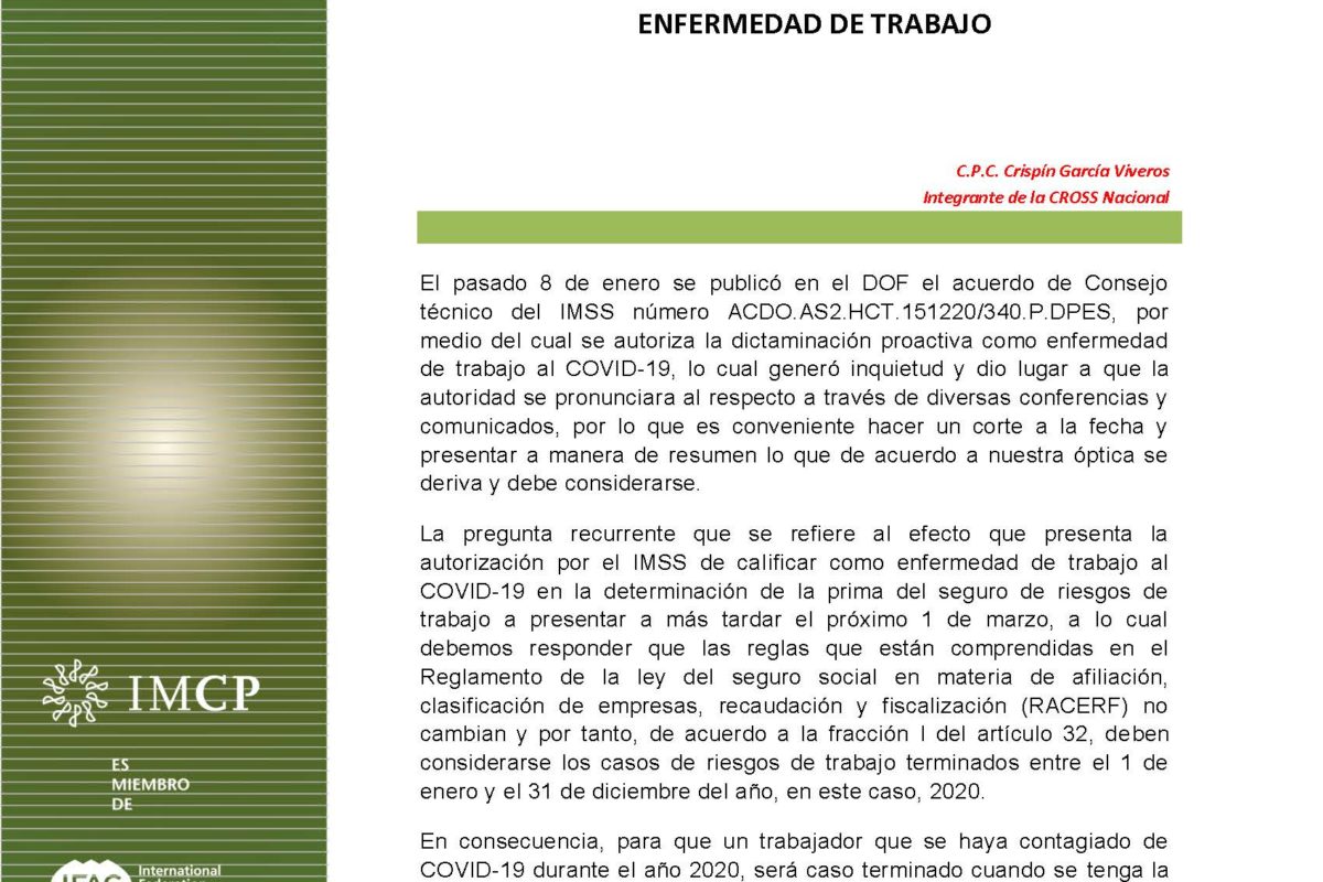 CROSS Informa 2021-04 SITUACIÓN QUE AL 11 DE FEBRERO DE 2021 TIENE LA CALIFICACIÓN DEL COVID-19 COMO ENFERMEDAD DE TRABAJO