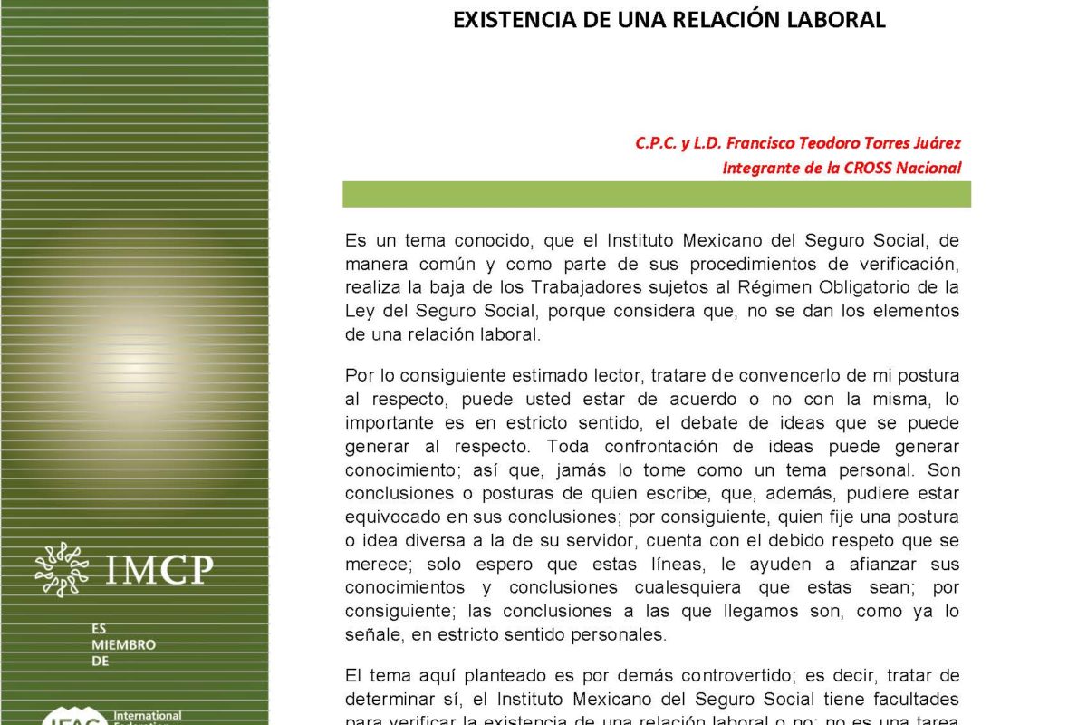 CROSS Informa 2021-05 ANÁLISIS DE LAS FACULTADES DEL INSTITUTO MEXICANO DEL SEGURO SOCIAL PARA VERIFICAR LA EXISTENCIA DE UNA RELACIÓN LABORAL