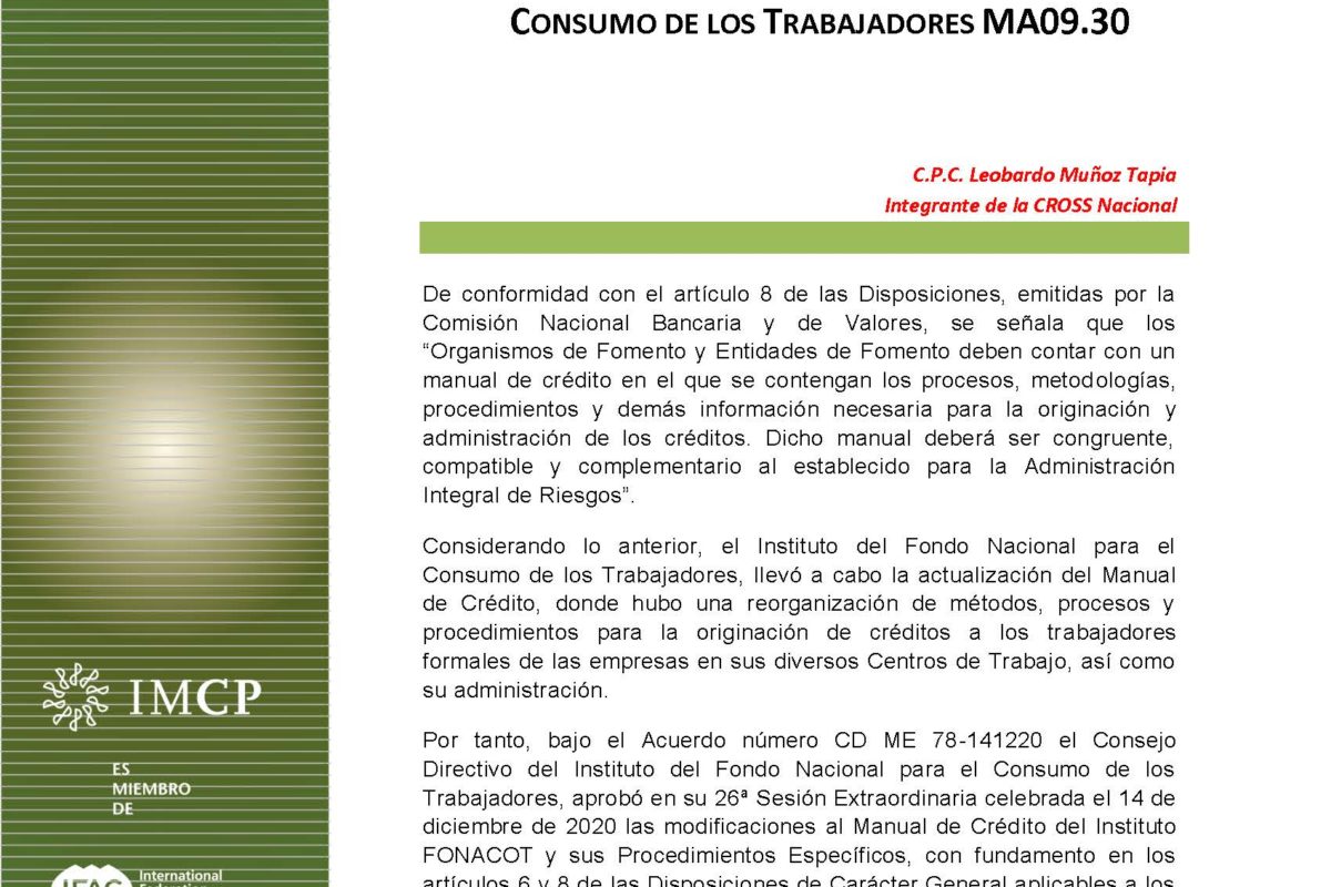 CROSS Informa 2021-07 ACTUALIZACIÓN DEL MANUAL DE CRÉDITO DEL INSTITUTO DEL FONDO NACIONAL PARA EL CONSUMO DE LOS TRABAJADORES MA09.30