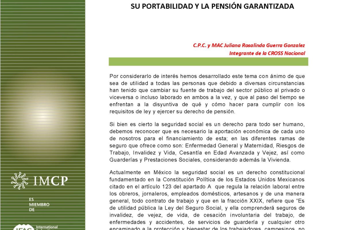 CROSS Informa 2021-08 ANÁLISIS GENERAL DE LAS PENSIONES OTORGADAS POR EL IMSS E ISSSTE, SU PORTABILIDAD Y LA PENSIÓN GARANTIZADA