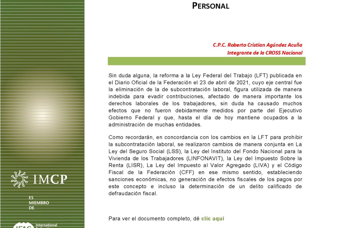 CROSS Informa 2021-10 PROBLEMÁTICAS EN LA IMPLEMENTACIÓN DE LA REFORMA EN MATERIA DE SUBCONTRATACIÓN DE PERSONAL