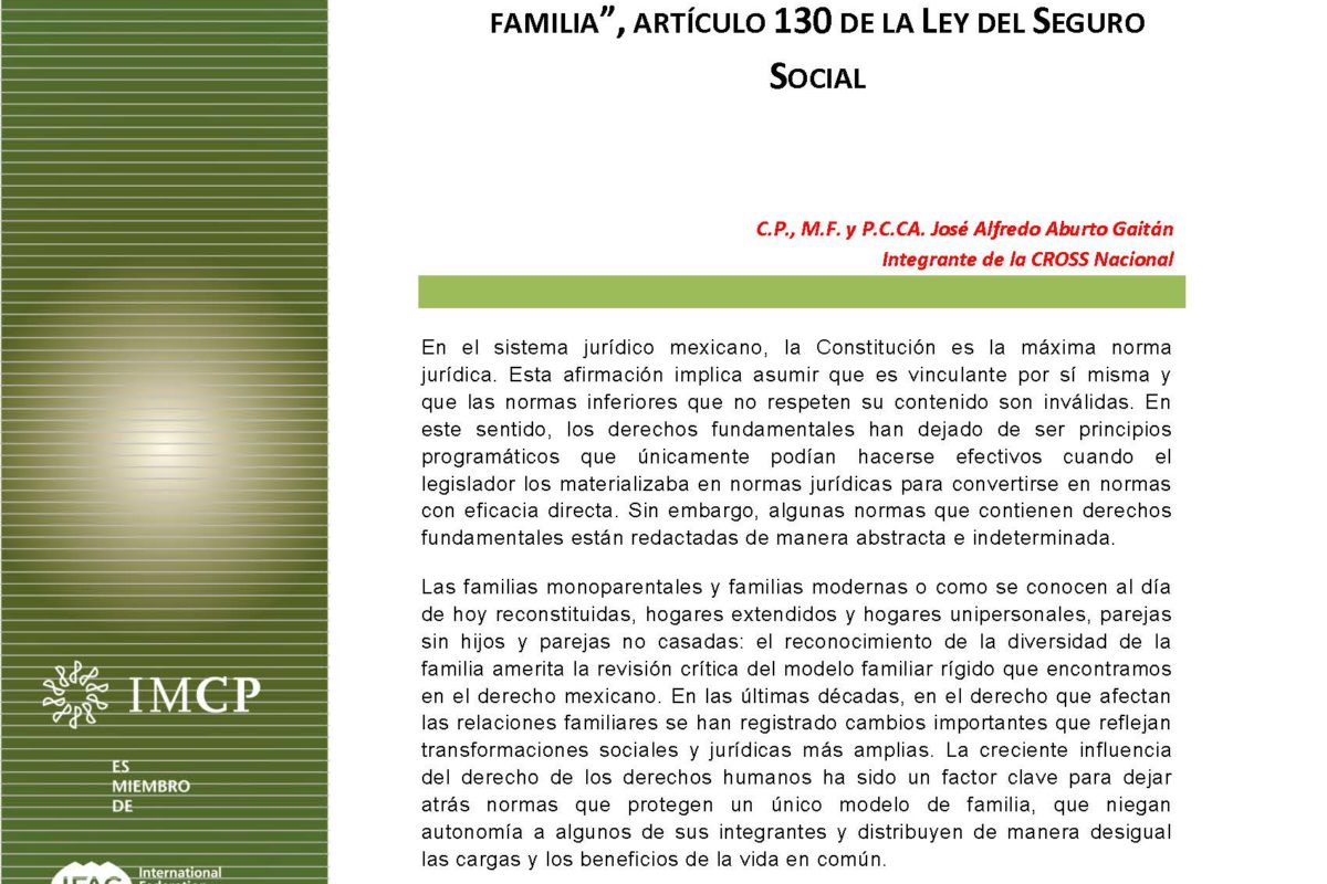 CROSS Informa 2022-01 VIOLACIÓN DEL DERECHO A LA SEGURIDAD SOCIAL EN SU VERTIENTE DE LA “PROTECCIÓN A LA FAMILIA”, ARTÍCULO 130 DE LA LEY DEL SEGURO SOCIAL