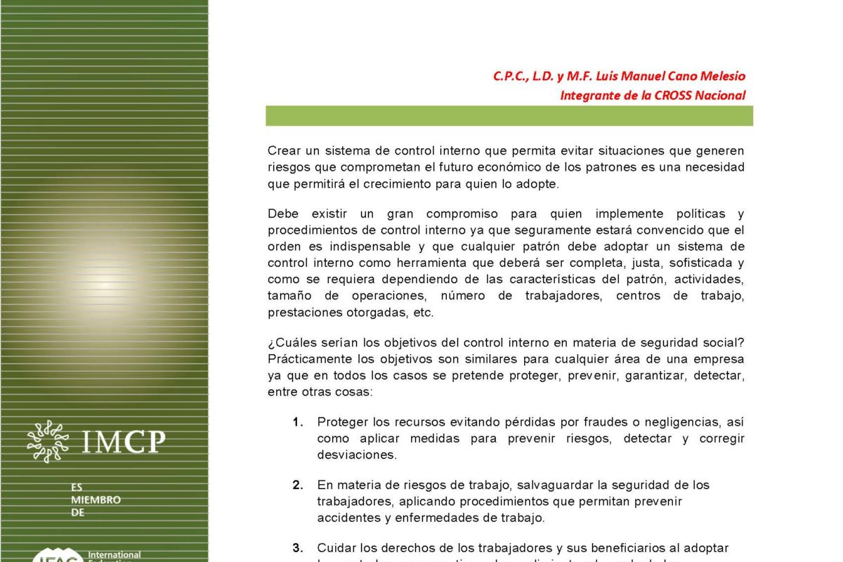 C.P.C., L.D. y M.F. Luis Manuel Cano Melesio Integrante de la CROSS...