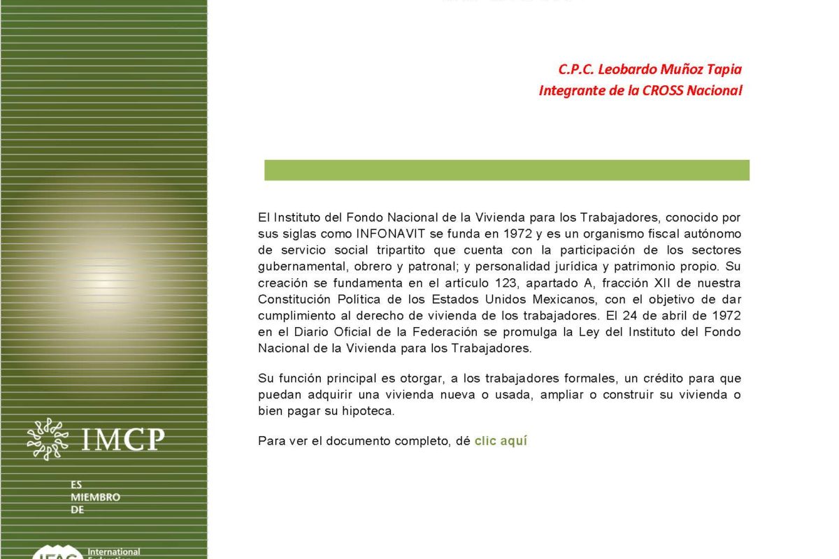 C.P.C. Leobardo Muñoz Tapia Integrante de la CROSS Nacional El Instituto del...