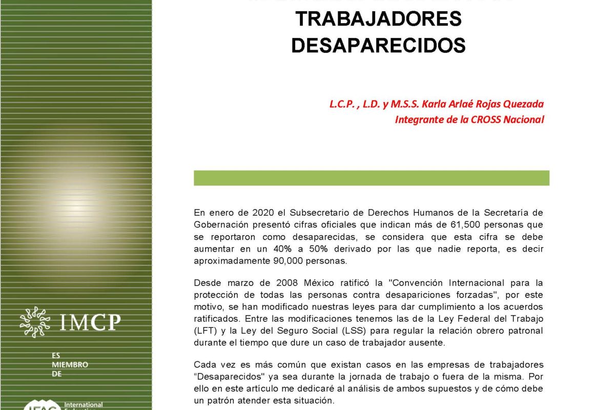 CROSS 2020-11 TRATAMIENTO LABORAL Y DE SEGURIDAD SOCIAL PARA TRABAJADORES DESAPARECIDOS