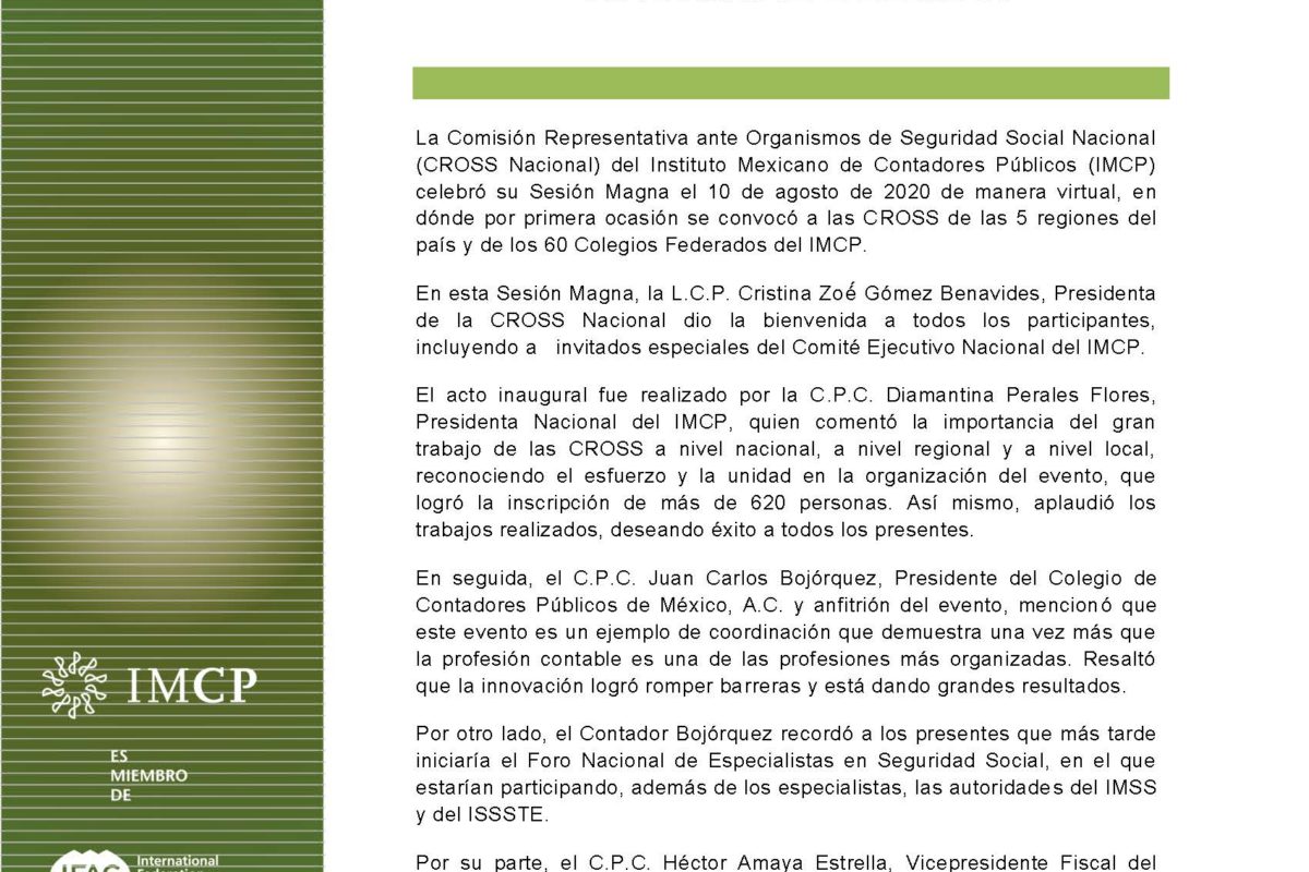 CROSS Informa 2020-16 SESIÓN MAGNA CROSS NACIONAL DEL IMCP