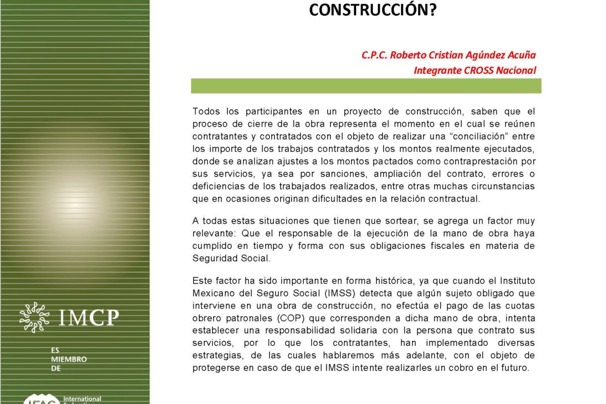 CROSS Informa 2020-17 ¿QUE SIGUE, DESPUÉS DE INFORMAR AL IMSS DE LA TERMINACIÓN DE UNA OBRA DE CONSTRUCCIÓN?