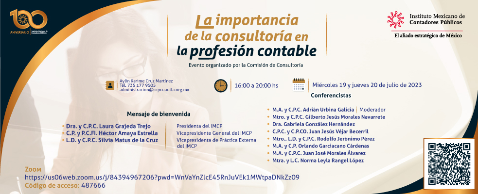 Link de ingreso: https://us06web.zoom.us/j/84394967206?pwd=WnVaYnZIcE45RnJuVEk1MWtpaDNkZz09#success Código de acceso: 487666