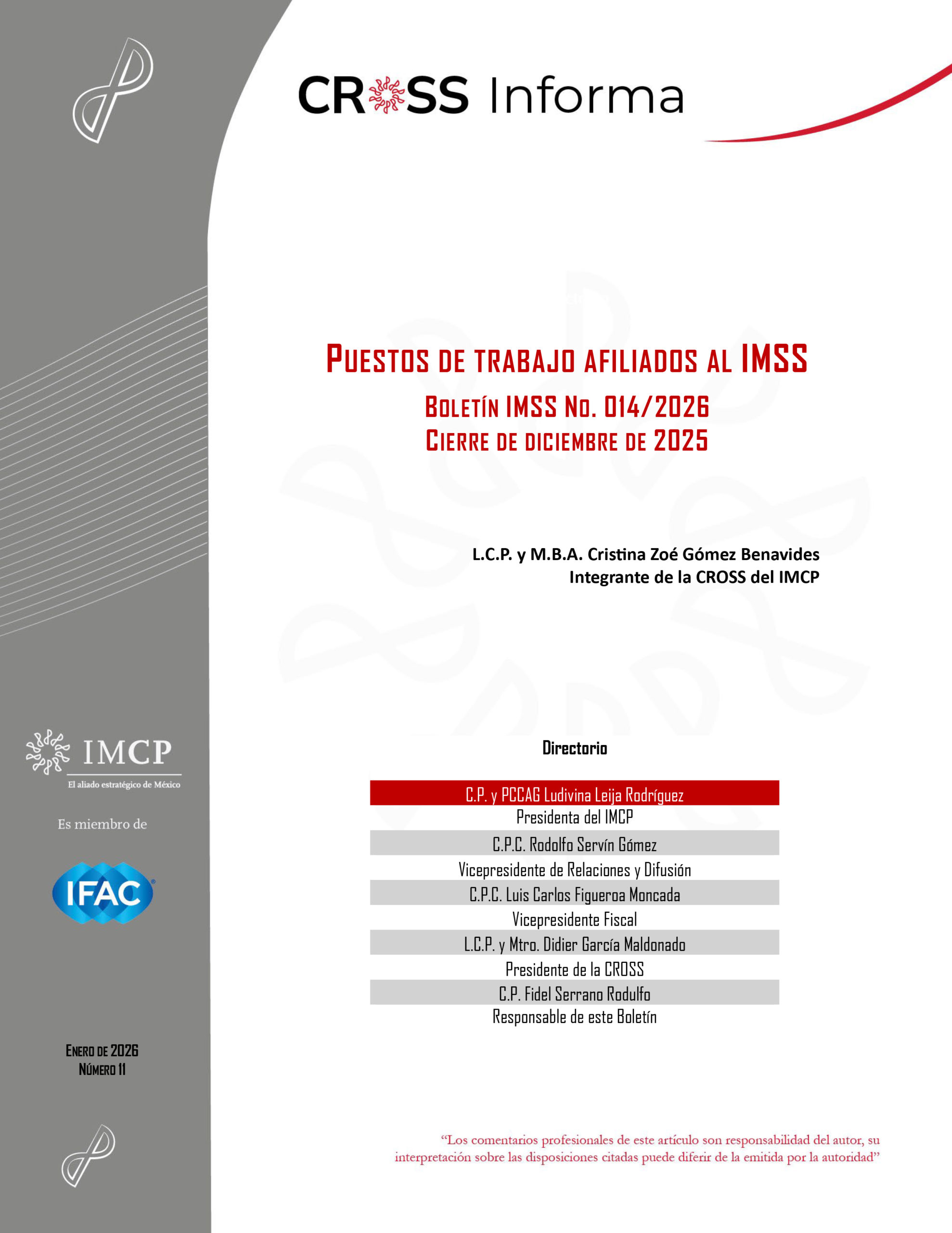 Boletín de Noticias de la CROSS 2025-11 Puestos de trabajo afiliados al IMSS Boletín IMSS No. 014/2026 Cierre de diciembre de 2025