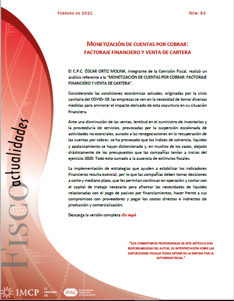 Fiscoactualidades_92 MONETIZACIÓN DE CUENTAS POR COBRAR: FACTORAJE FINANCIERO Y VENTA DE CARTERA