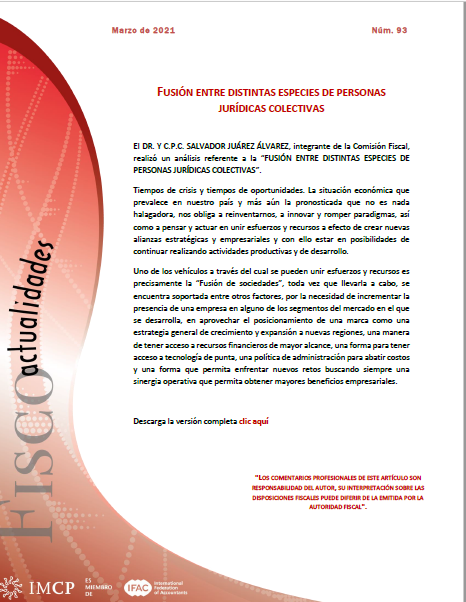 Fiscoactualidades_93 FUSIÓN ENTRE DISTINTAS ESPECIES DE PERSONAS JURÍDICAS COLECTIVAS