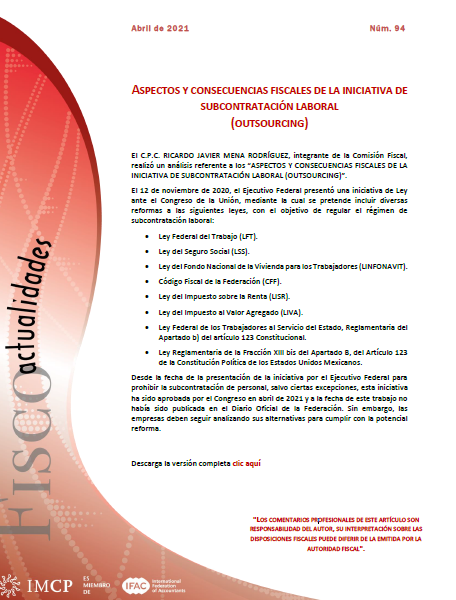 Fiscoactualidades_94 ASPECTOS Y CONSECUENCIAS FISCALES DE LA INICIATIVA DE SUBCONTRATACIÓN LABORAL (OUTSOURCING)