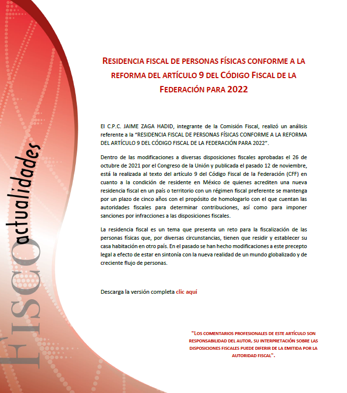 Fiscoactualidades_100 RESIDENCIA FISCAL DE PERSONAS FÍSICAS CONFORME A LA REFORMA DEL ARTÍCULO 9 DEL CÓDIGO FISCAL DE LA FEDERACIÓN PARA 2022