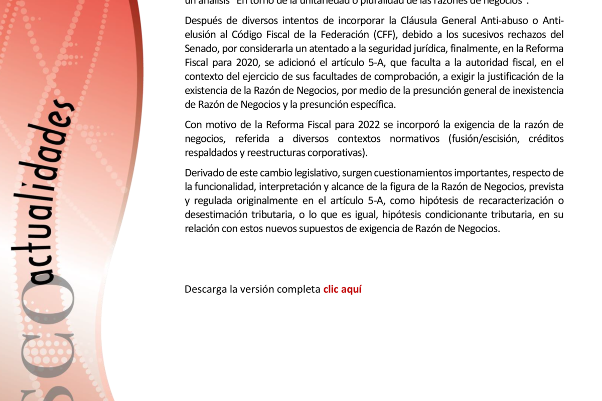 Fiscoactualidades_103 EN TORNO DE LA UNITARIEDAD O PLURALIDAD DE LAS RAZONES DE NEGOCIOS