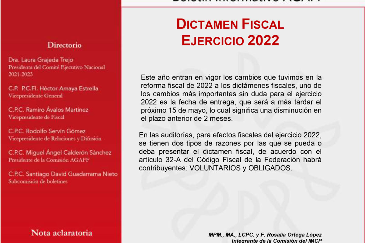 AGAFF 01 / DICTAMEN FISCAL EJERCICIO 2022