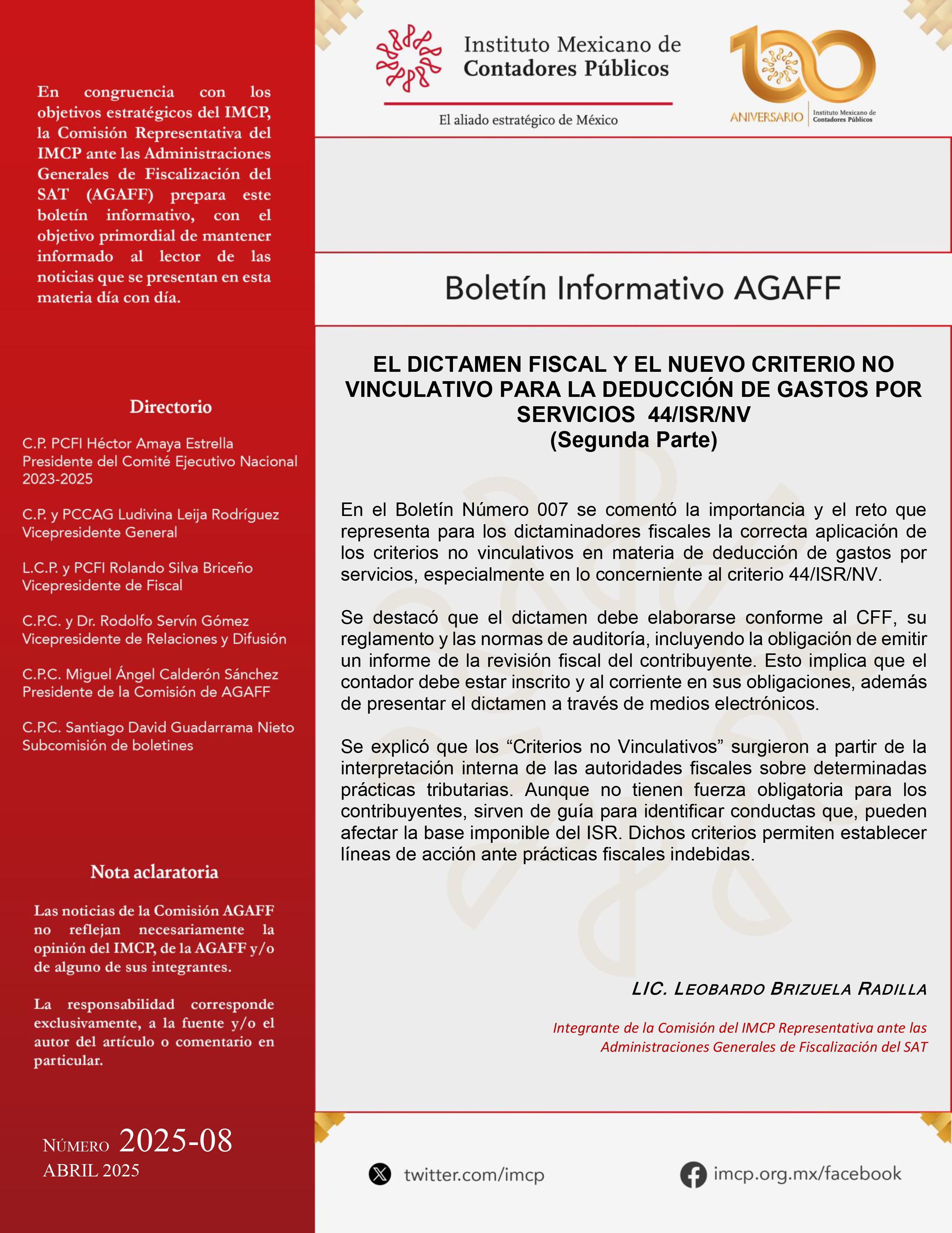AGAFF 08 / EL DICTAMEN FISCAL Y EL NUEVO CRITERIO NO VINCULATIVO PARA LA DEDUCCIÓN DE GASTOS POR SERVICIOS 44/ISR/NV (Segunda Parte)