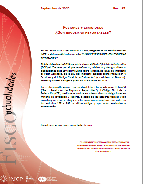 ” Fiscoactualidades 2020-85 Fusiones y escisiones ¿Son esquemas reportables? “