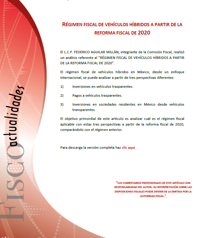 Fiscoactualidades 2020-81 RÉGIMEN FISCAL DE VEHÍCULOS HÍBRIDOS A PARTIR DE LA REFORMA FISCAL DE 2020