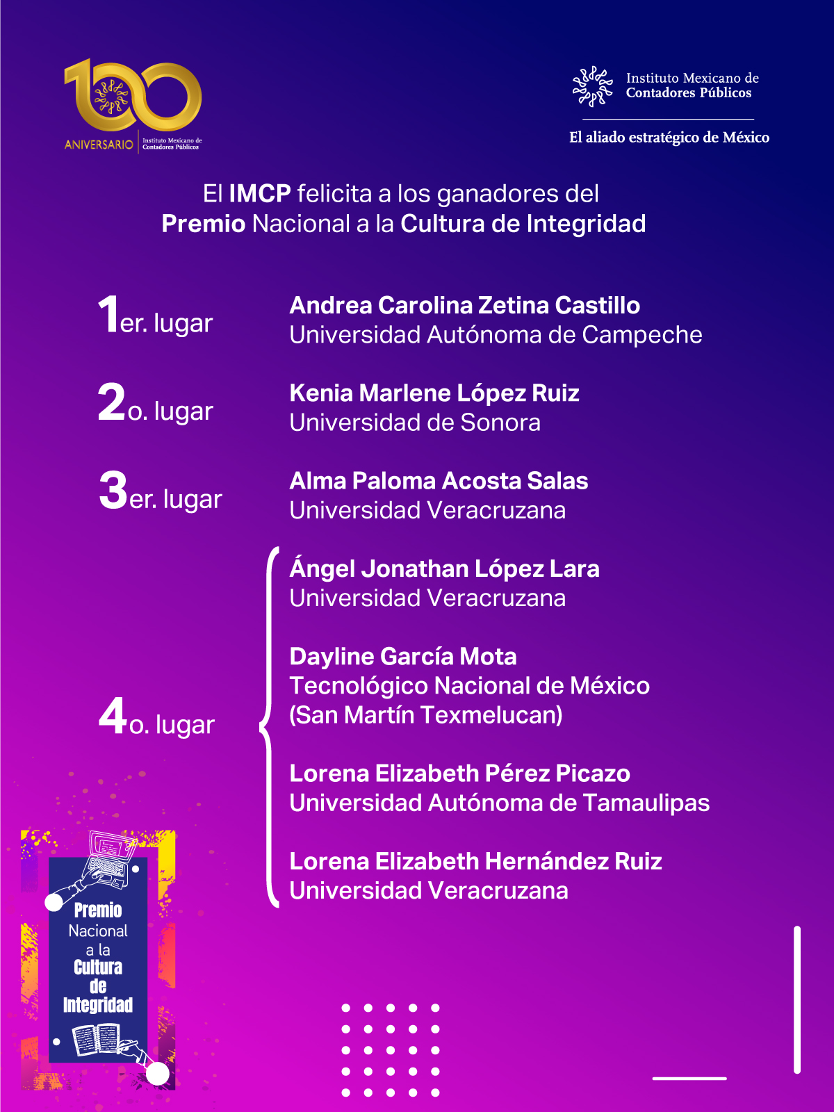 Conoce aquí a los ganadores del Premio Nacional a la Cultura de Integridad 2024. (Da clic sobre la imagen)