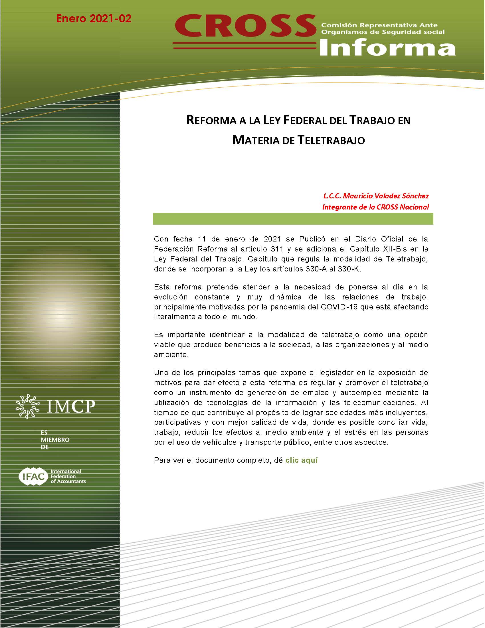 La Comisión Representativa ante Organismos de Seguridad Social (CROSS) del instituto Mexicano de Contadores Públicos (IMCP) en ánimo de incidir en la solución de diversas problemáticas en la práctica de seguridad social en la Industria de la Construcción, decidió crear una subcomisión en la materia a efecto de revisar estos tópicos.